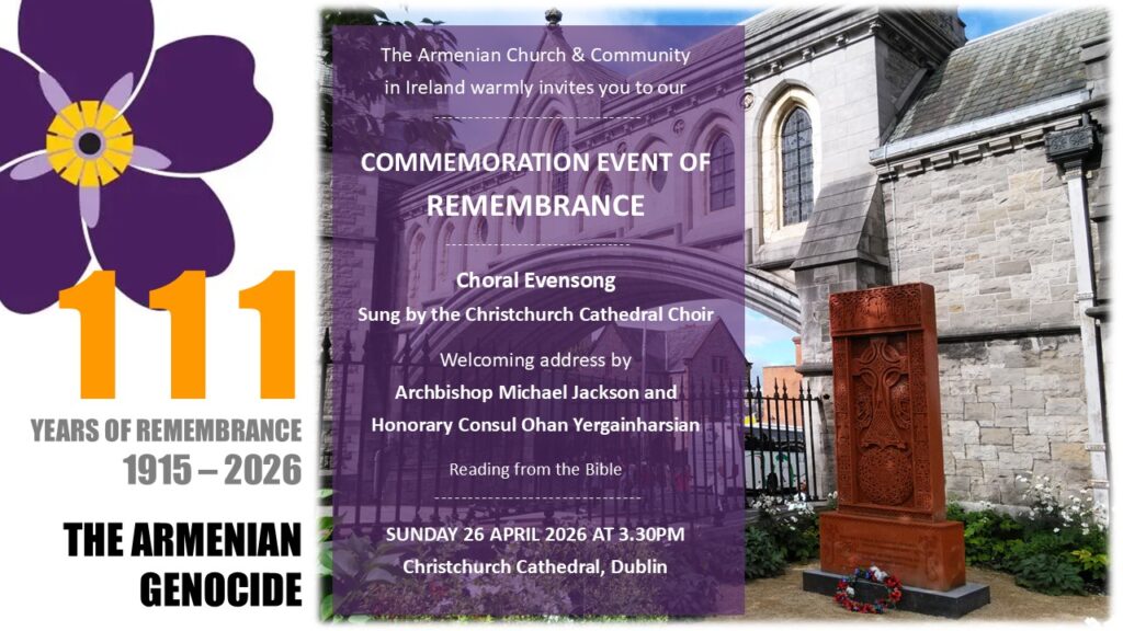 Apr 15, 2026 | Posted by in News and Events | Comments Off on Genocide Remembrance Service in Christchurch Cathedral on Apr 26th at 3.30pm